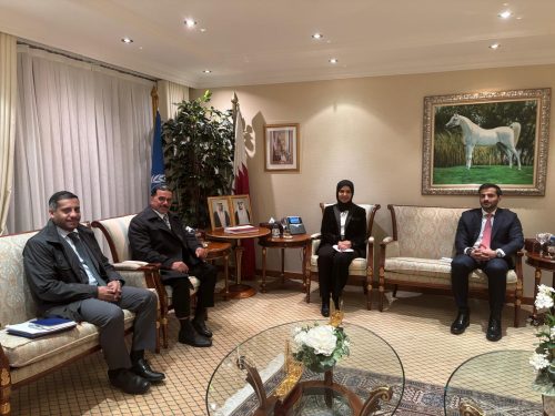 حيث التقى خلال الجولة بكل من سعادة السفيرة د. هند بنت عبدالرحمن المفتاح، المندوب الدائم لدولة قطر لدى الأمم المتحدة في جنيف، وسعادة السفيرة ناتالي تشوارد، مديرة مركز جنيف لحوكمة قطاع الأمن والسيد أيمن أيوب، مدير برنامج الشرق الأوسط وشمال أفريقيا بالمركز، والسيدة كارولين ميلاني ريمبال، رئيسة قسم مكتب الأمم المتحدة لشؤون نزع السلاح في جنيف، والسيد مايكل سبايس، كبير مسؤولي الشؤون السياسية ونائب رئيس الخدمة بالمكتب، والسيد دانيل فيكيس، رئيس وحدة دعم تنفيذ اتفاقية الأسلحة البيولوجية بالمكتب.
