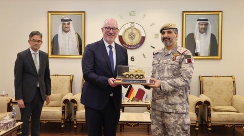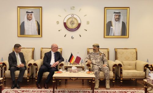 التقى اللواء الركن جاسم علي العطية، قائد القوات البرية الأميرية القطرية، في معسكر الدحيليات، سعادة الدكتور يان شتوس، سكرتير الدولة لدى وزارة الدفاع الألمانية، والوفد المرافق له، وذلك خلال زيارته إلى دولة قطر.