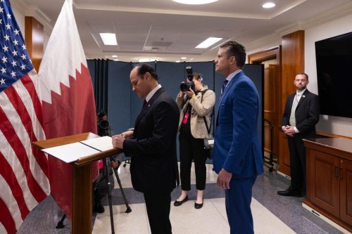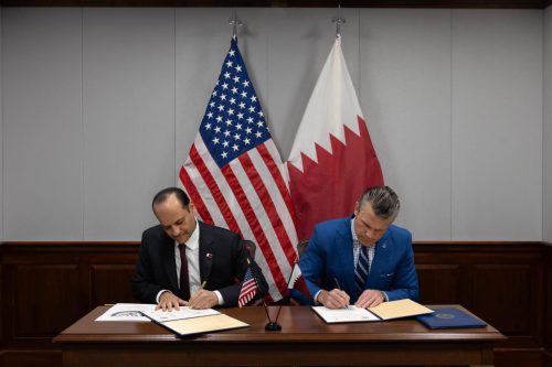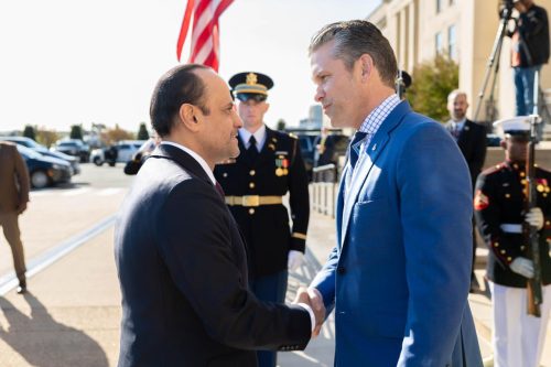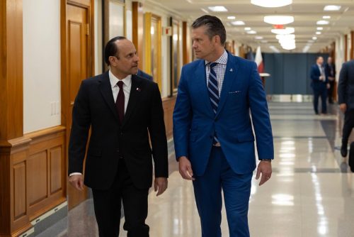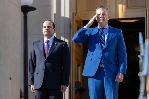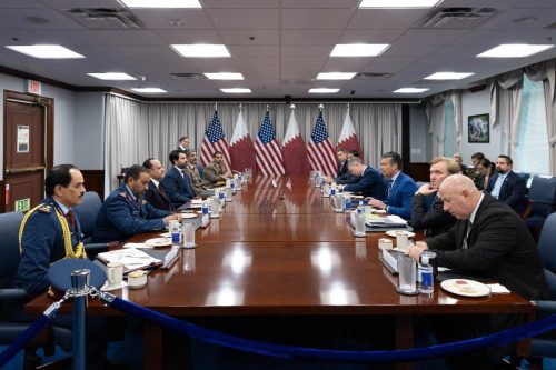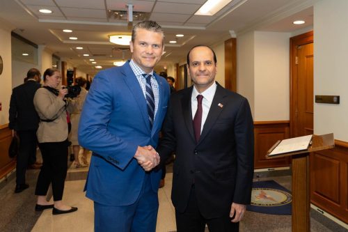 التقى سعادة الشيخ سعود بن عبدالرحمن بن حسن آل ثاني نائب رئيس مجلس الوزراء ووزير الدولة لشؤون الدفاع سعادة السيد بيت هيفسيث وزير الحرب الأمريكي، وذلك