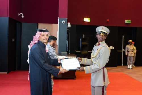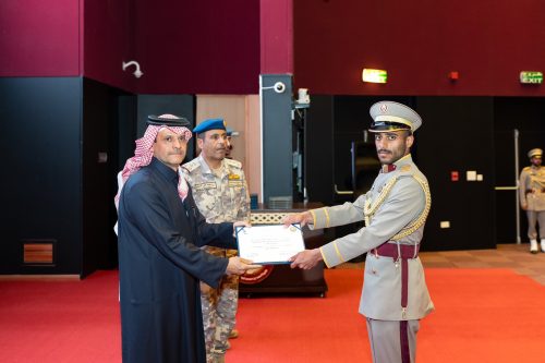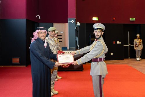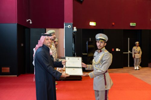 وفي نهاية الحفل، قام سعادة الشيخ سعود بن عبدالرحمن بن حسن آل ثاني نائب رئيس مجلس الوزراء ووزير الدولة لشؤون الدفاع بتوزيع الشهادات على أوائل الخريجين، بحضور عدد من كبار القادة الضباط في القوات المسلحة القطرية.